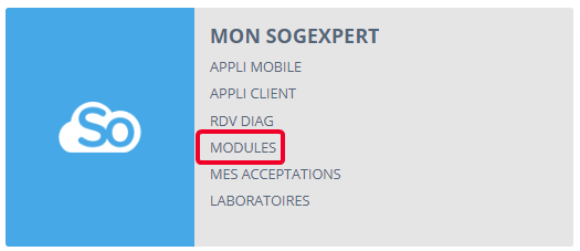 Vous retrouvez ici les modules installés sur votre plateforme Sogexpert, et vous avez la possibilité de demander l'installation des modules non installés :
